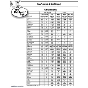 Roxy's Lamb & Beef Grain Free Blend is formulated to be slightly higher in fat than our other blends, popular for smaller or more active dogs that benefit from a richer diet. Roxy's Lamb & Beef Blend is 100% nutritionally complete and balanced for adult dogs and is formulated to meet the nutritional levels established by the AAFCO Dog Food Nutrient Profiles for Maintenance.