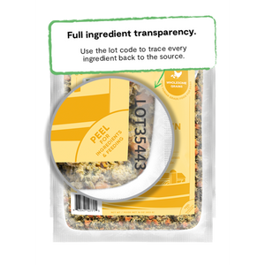 This fresh & slow-cooked recipe is a terrific source of quality nutrition, thanks to a nutrient-rich mix of human grade and humanely raised antibiotic-free chicken, non-GMO veggies, superfoods and wholesome grains.