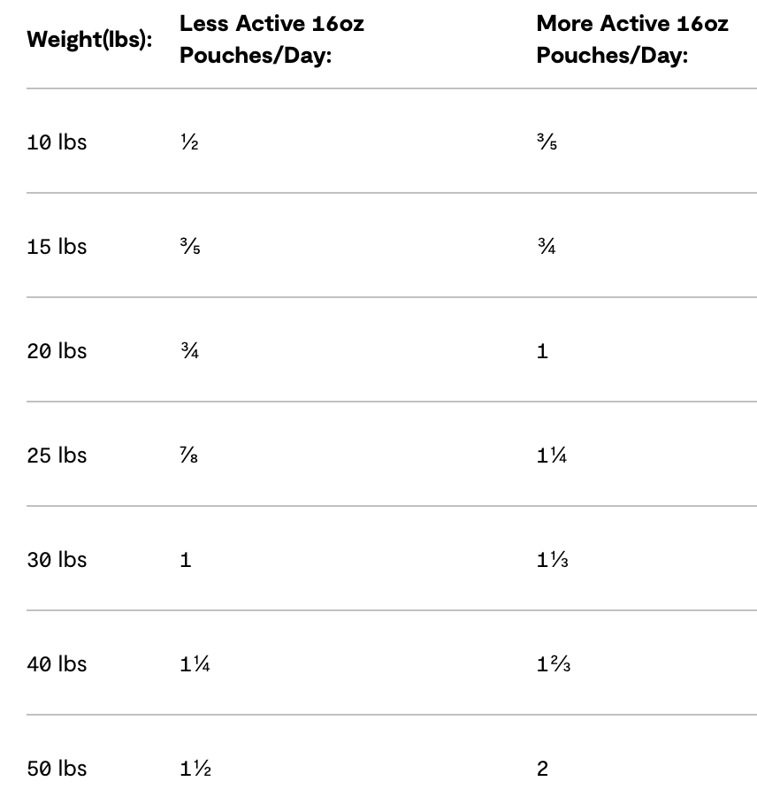 1322 kcal ME/kg, 38 kcal ME/oz,600 kcal ME/16 oz pack