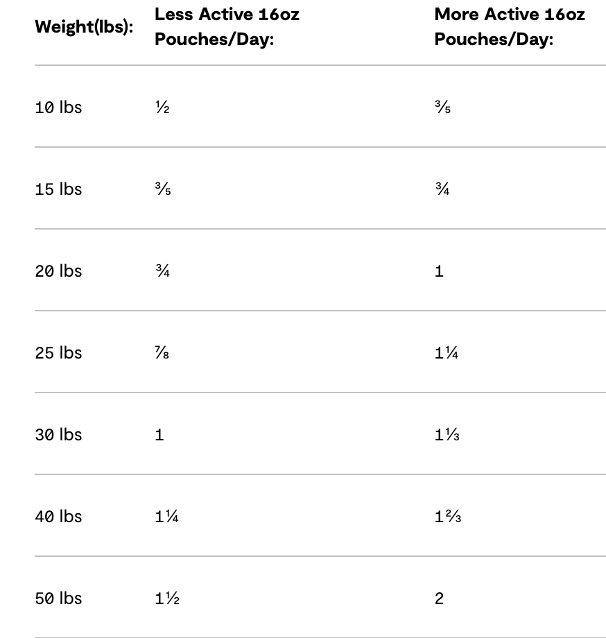 1285 kcal ME/kg, 36 kcal ME/oz, 583 kcal ME/16 oz pack