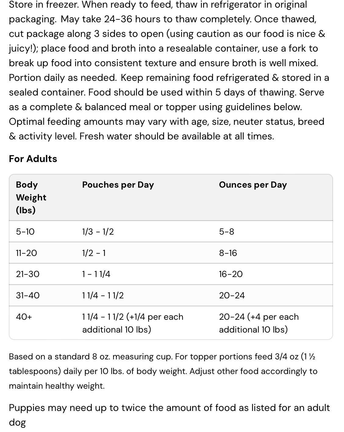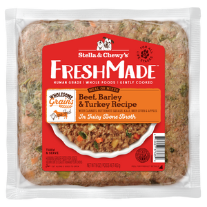 Stella & Chewy’s FreshMade is fresh food made easy! Human grade whole foods are gently cooked in their own juices for a craveable taste and tender texture. Reviewed by a board-certified veterinary nutritionist and made with only the good stuff – nutrient-rich poultry & organ meats paired with healthy fruits, veggies, superfoods, botanicals & tasty bone broth - feeding a tasty, fresh meal is easier than ever! Simply thaw & serve as a complete meal or tasty topper and watch those tails wag!
