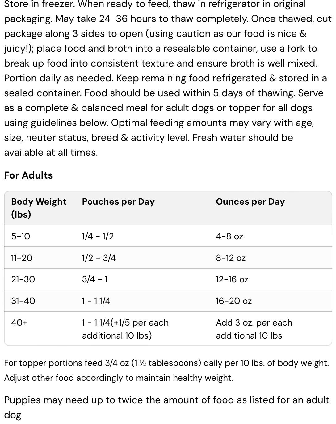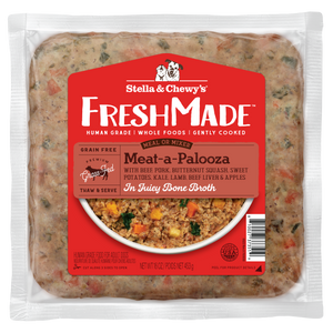 Stella & Chewy’s FreshMade is fresh food made easy! Human grade whole foods are gently cooked in their own juices for a craveable taste and tender texture. Reviewed by a board-certified veterinary nutritionist and made with only the good stuff – 60% nutrient-rich meats & organ meats paired with healthy fruits, veggies, superfoods, botanicals & tasty bone broth - feeding a tasty, fresh meal is easier than ever! Simply thaw & serve as a complete meal or tasty topper and watch those tails wag!