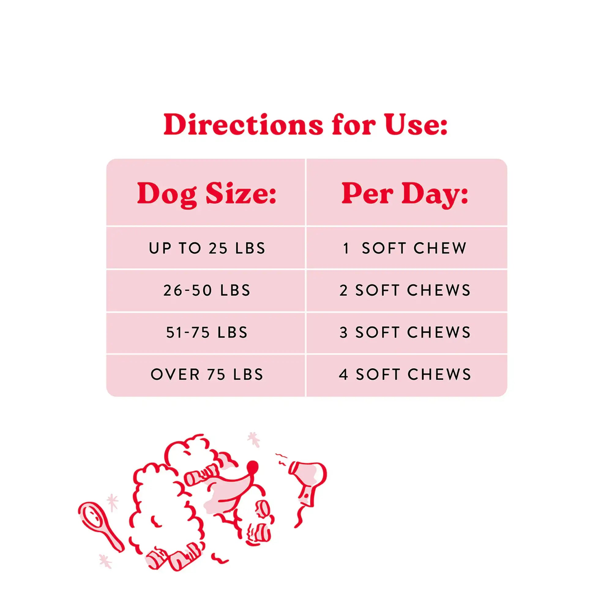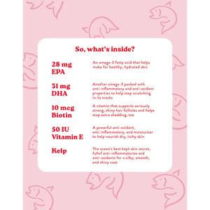 Let’s help give your pup’s coat a healthy (and extra shiny!) boost. A daily supplement to support healthy skin and coat. Our formula (with tasty, USA salmon!) includes vitamin E and essential fatty acids, too.