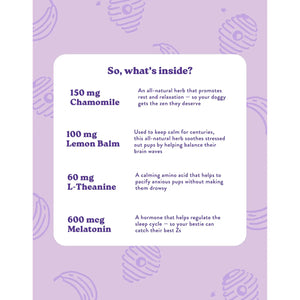 Let’s help your pup manage everyday stress. A daily health supplement with natural, calming ingredients designed to help your pup keep their cool - because you're not the only one in need of a little relaxation and TLC.