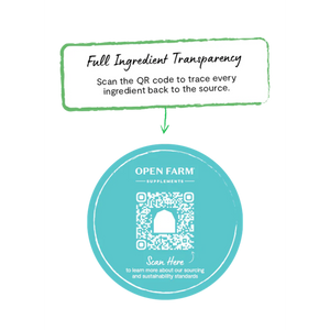 Because of their ingredient sourcing, transparency, and testing, Open Farm has a wide variety of healthy, trustworthy products that we love. Open Farm uses 100% animal welfare certified meats from grass-fed, pasture raised animals, with no growth hormones or antibiotics, ever. They use 100% Wild-caught, sustainably sourced fish as well as Non-GMO fruits and vegetables. If farming or fishery partners can’t pass regular audits to ensure optimal practices, Open Farm does not work with them. Learn more about Open Farm's sourcing practices here.