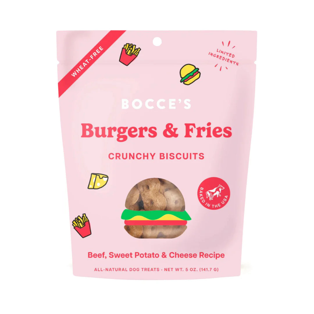 Bocce's Bakery Burgers & Fries Beef, Sweet Potato and Cheese Crunchy Biscuits Dog Treats