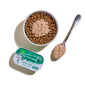Crafted with 96% fresh Icelandic Arctic Char, this silky mousse is a delicious and nutritious way to add instant texture and variety to your dog's bowl. Grain- and legume-free and made in a human-grade facility with 100% human grade ingredients.