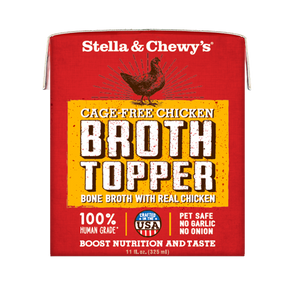 Our all natural bone broth is slowly simmered in small batches and brimming with taste and nutrition. We add real cage-free chicken or grass-fed beef for a taste and topper your dog will go wild for. Serve as a treat or topper to your dogs meal.