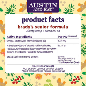 Active Ingredients: Reishi Mushroom, Holy Basil Extract, Ginkgo Biloba, Bilberry, Hawthorn Berry, New Zealand Green Lipped Mussel, Turmeric Rhizome, Hempseed oil, Broad Spectrum Hemp Extract