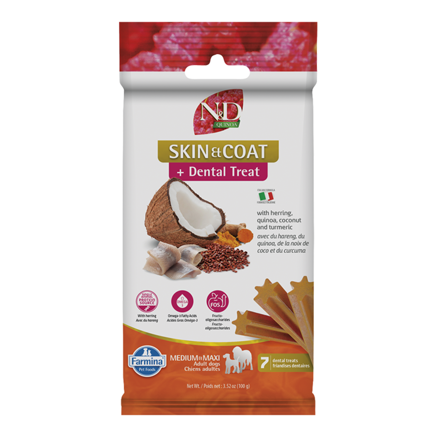 Farmina N&D Quinoa Skin & Coat + Dental Treat Herring & Coconut Medium & Maxi Dog Treats