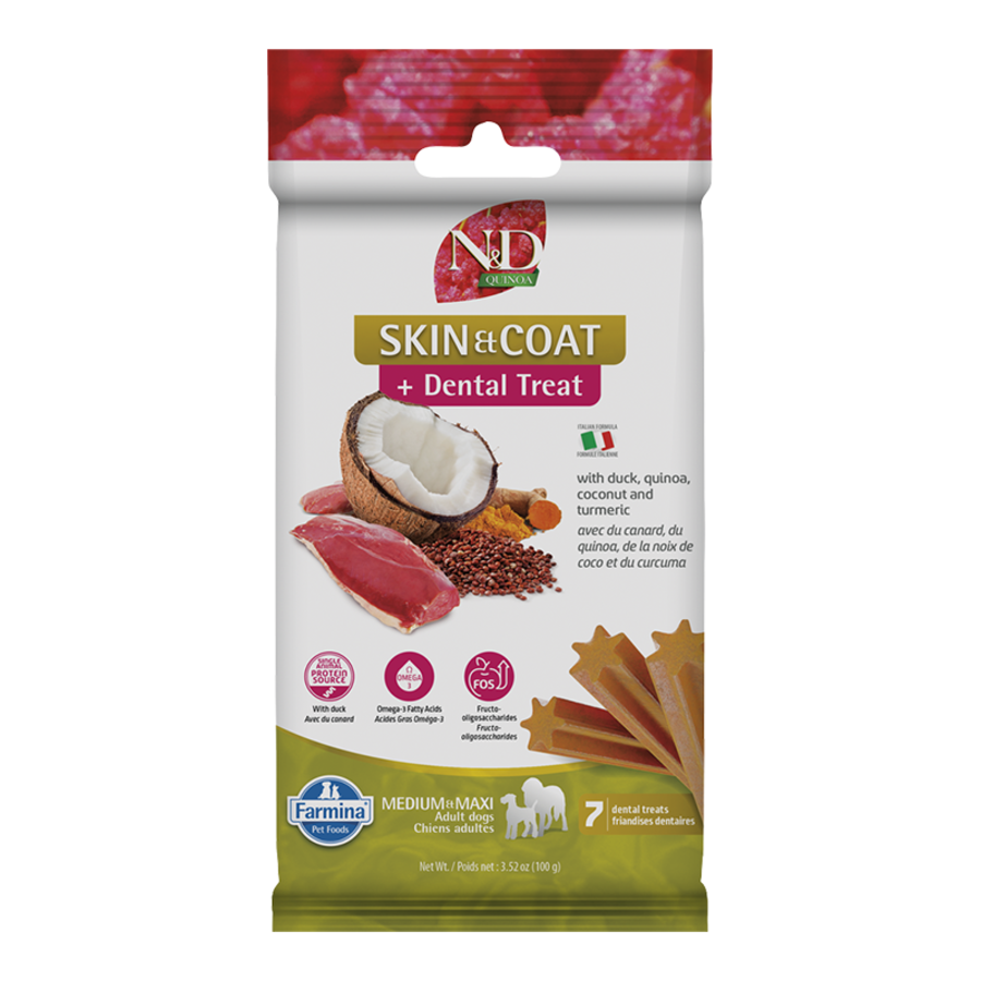 Farmina N&D Quinoa Skin & Coat + Dental Treat Duck & Coconut Medium & Maxi Dog Treats