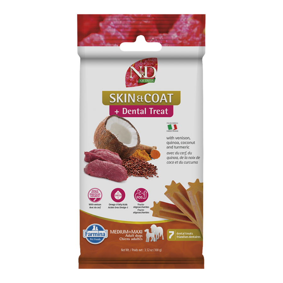 Farmina N&D Quinoa Skin & Coat + Dental Treat Venison & Coconut Medium & Maxi Dog Treats