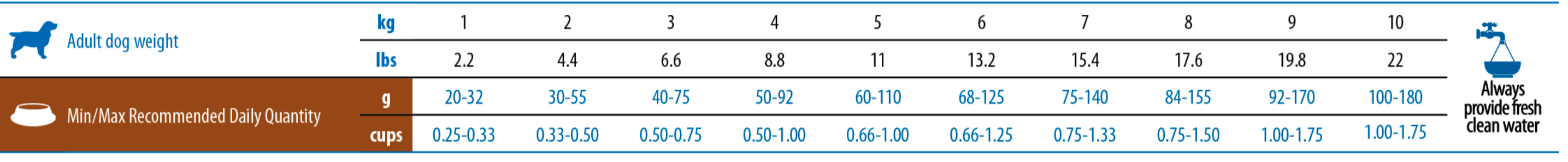 Venison (22%), dehydrated venison protein (20%), sweet potato, chicken fat, dried pumpkin (5%), dried eggs, herring, dehydrated herring protein, fish oil (from herring), pea fibre, dried carrot, alfalfa meal, inulin, fructo-oligosaccharides, yeast extract (source of manno-oligo-saccharides), dried apple (0.5%), dried pomegranate, dried spinach, psyllium husks and seeds, dried sweet orange, dried blueberry, sodium chloride, dried brewers’ yeast, turmeric (0.2%), aloe vera extract, glucosamine, chondroitin sulphate.