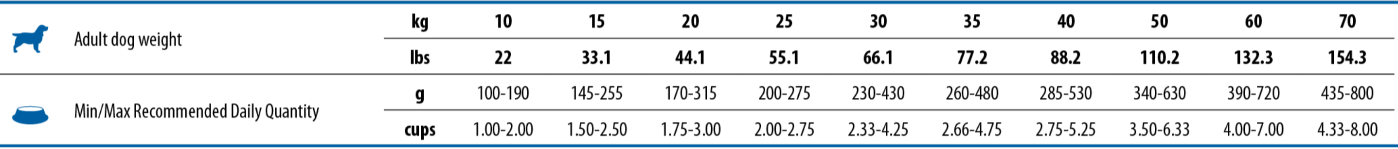 lamb (20%), dehydrated lamb protein (20%), spelt (12%), oats (12%), chicken fat, dehydrated herring protein, dried beet pulp, fish oil (from herring), dried carrot, alfalfa meal, inulin, fructo-oligosaccharides, yeast extract (source of manno-oligo-saccharides), dried banana (0.5%), dried kiwi (0.5%), dried mango (0.5%), dried papaya (0.5%), dried pineapple (0.5%), dried spinach, psyllium husks and seeds, sodium chloride, dried brewers' yeast, turmeric, aloe vera extract, glucosamine, chondroitin sulphate.