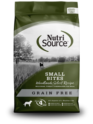 As a member of our grain free series of dog foods, NutriSource® Grain Free Small Bites Woodlands Select Recipe is formulated to meet AAFCO guidelines for all life stages.