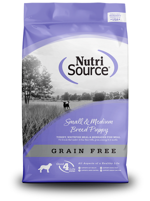As a member of our grain free series of dog foods, NutriSource® Small & Medium Breed Grain Free Puppy Food is formulated to meet AAFCO guidelines for all life stages.