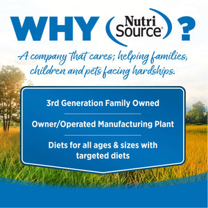 NutriSource® grain inclusive formulas deliver compact nutrition and include prebiotics and probiotics to help support a healthy gut.