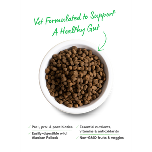 This vet-formulated kibble provides an easily digestible complete and balanced meal that is gentle on the stomach. Crafted with nutrient-rich, easily digestible Ocean Wise recommended wild Alaskan pollock as the 1st ingredient, and combined with stomach soothing fibers like oatmeal and pumpkin. This recipe is packed with prebiotics, probiotics, and postbiotics to support a healthy gut and maintain stool quality. Recommended for dogs who struggle with digestive issues and need a specialized solution that supports gut health.