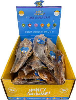 Give your dog a satisfying chew that’s full of flavor with our Honey I’m Home Water Buffalo Scapula Chew. These all-natural chews are a great way to keep your pup engaged while supporting dental health through natural gnawing. Made without grains and with a novelty protein, they’re a smart choice for dogs with common food sensitivities. Perfect for moderate chewers, the light, crunchy texture is great for simple chewing satisfaction.