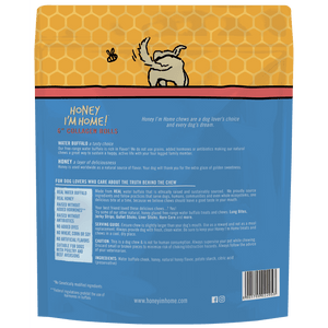 We only use simple, easy to read ingredients like Water Buffalo and Honey. You can be confident that your dog is only getting what it needs from the best dog chew possible.