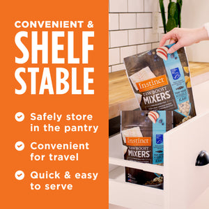 Add Instinct Raw Boost Mixers to your dog’s current food using the information below. Remember to reduce the calorie amount of your current food accordingly to avoid overfeeding.