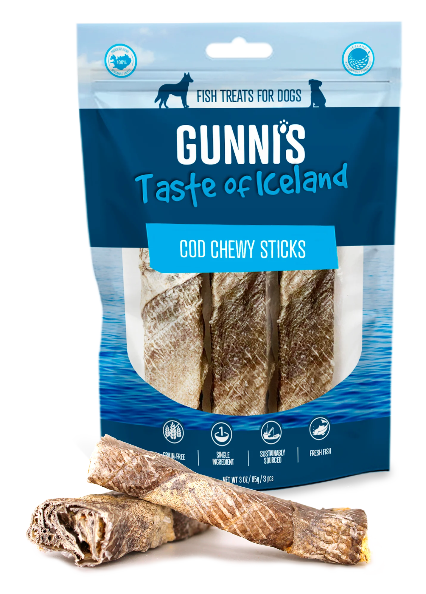Gunni's Pet Taste of Iceland Chewy Sticks Cod Skin Dog Treats