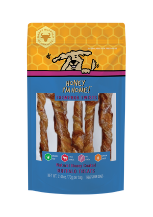 Made of the highest quality ingredients, in accordance with international animal welfare standards, we use only human-grade water buffalo out of India that are 100% grass fed, free range, grain free and are humanely raised without the use of added antibiotics or hormones. Each treat and chew is then coated in sustainably-harvested honey for a product that is as sweet to the taste as it is strong in sustainability.
