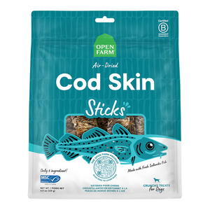 Our Cod Skin sticks are made with fresh Icelandic MSC certified wild-caught cod skins gently air dried to deliver an irresistibly crunchy treat packed with nutrients. This single ingredient crunchy treat is packed with protein, with Omega-3 fatty acids for healthy skin and coat, and will keep your pup busy with a delicious treat. Crafted in a human-grade facility with 100% human-grade ingredients, this grain-free treat is free from artificial flavors, colors, and preservatives.