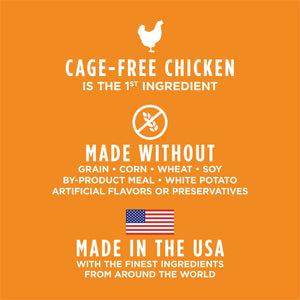 Chicken (including Ground Chicken Bone), Chicken Liver, Pumpkinseeds, Chicken Heart, Dried Pumpkin, Sweet Potato, Dried Chicory Root, Annatto Extract (color), Apple Cider Vinegar, Mixed Tocopherols (for freshness), Rosemary Extract, Dried Bacillus coagulans Fermentation Product.