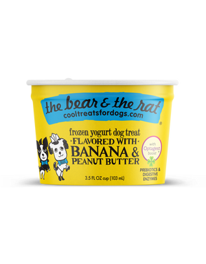 A sweet, tangy & nutritious frozen yogurt treat for your pup. Each cup of Bear & Rat dog ice cream contains one daily serving of prebiotics and four plant-based digestive enzymes. The prebiotics grow your pup’s native bacteria (their own probiotics) for healthy stools, less gas. The digestive enzymes help them absorb their food to the fullest! We only use clean ingredients in The Bear & The Rat’s frozen dog yogurt treats. And while it’s a fun dog yogurt treat, one cup also adds hydration, nutrients and is a complete digestive aid. And yes, we make our dog frozen treats in a human grade ice cream facility because your dogs deserve the very best.