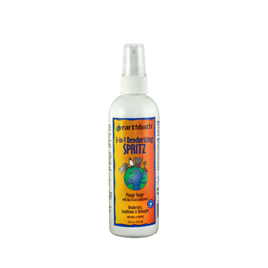 earthbath® 3-in-1 Deodorizing Spritz naturally deodorizes, conditions and detangles coats with the sumptuous botanical fragrance of mangoes. Colloidal oatmeal, organic aloe vera, and vitamin E remoisturize skin and coat and impart a healthy shine, while gentle detanglers help coat soft and tangle free. Use between baths to freshen, condition and detangle, or as a finishing spray after bathing your dog with earthbath® 2-in-1 Conditioning Shampoo. Safe for dogs over 6 weeks old. Not for use on cats.