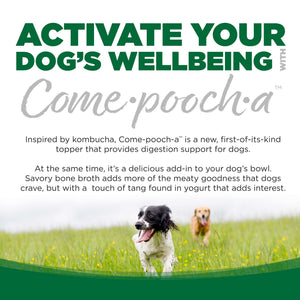 Inspired by kombucha, Come-pooch-a is a new, first-of-its-kind topper that provides digestion support for dogs.