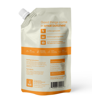 Slow simmered organic bones, organic carrots, and filtered water creating a broth rich in collagen, minerals, and amino acids. Ideal for supporting joint health, strong bones, and healing gut lining. Add hydration by topping any meal or serving as a treat.