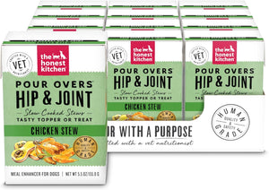 The Honest Kitchen Functional POUR OVERS Hip & Joint Support Chicken Stew Dog Food Topper makes mealtime extra paw-some for your best friend! This pourable stew is full of cage-free chicken simmered in a bone broth reduction. It delivers an extra helping of EPA and DHA to support your furbaby’s joint health and help reduce inflammation to keep your best friend comfy. It’s made with human-grade ingredients and is free of bad stuff like gums, carrageenan, feed-grade ingredients, meat meals, fillers, GMO ingredients and artificial flavors or preservatives. This yummy stew is packed in a box that’s su-paw easy to use, so you can easily add stew to each meal to encourage your furbaby to clean up every bite.