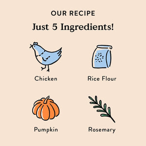 Chicken, Vegetable Glycerin, Brown Rice, Pumpkin and Rosemary Extract