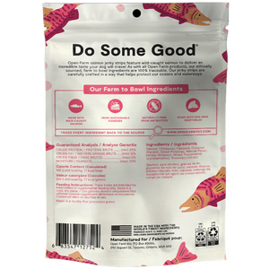 Open Farm wild-caught salmon jerky strips feature Ocean Wise recommended salmon to deliver an incredible taste your dog will crave! As with all Open Farm products, our ethically sourced ingredients are 100% traceable. Our jerky strips use ingredients sourced in a way that helps protect our oceans and waterways. Approximately 7-8 strips per bag.