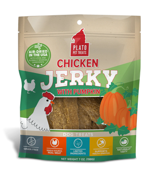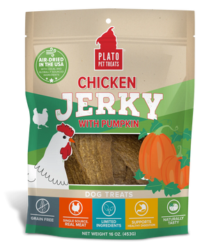 Pumpkin’s not just for Howl-oween anymore when you treat your dog to Plato Chicken Jerky with Pumpkin Dog Treats! These delicious doggy treats are made using a single source meat protein, including chicken hearts and livers as a healthy source of vitamins and minerals. The antibiotic-free, environmentally sourced, cage-free chicken is from the USA. The paw-some pumpkin is fiber rich to help support your canine companion’s digestion. You’ll love that these savory treats are crafted from limited ingredients, contain no artificial flavors, and are naturally preserved. Your pet pooch will love eating these paw-some pumpkin treats any time of year!