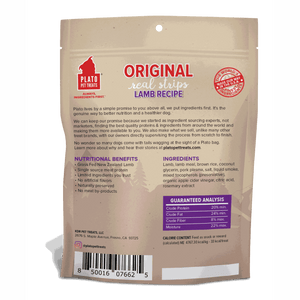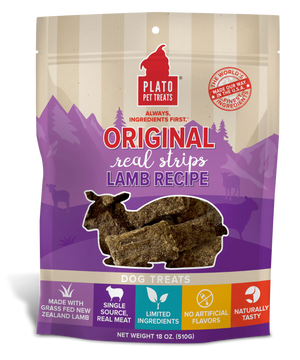 Help keep your paw-some pet pooch healthy with Plato Original Real Strips Lamb Dog Treats! These delicious, doggy-lovin’, soft-textured meat biscuits are made with brown rice and real, grass-fed New Zealand lamb as a single source meat protein. They’re just the right portion size and shape for easy chomping and chewing. If you have a smaller pet pooch, simply break the treats into tinier pieces so they can enjoy them, too. You’ll love that these yummy snacks are crafted from limited ingredients, contain no artificial flavors,and are naturally preserved. Your loveable fur-iend will love you for getting these paw-fectly healthy, tasty treats!