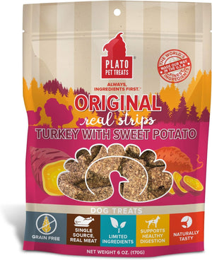 Your four-legged best friend will gobble up Plato Original Real Strips – Turkey & Sweet Potato Recipe Dog Treats! Each treat is like a taste of Thanksgiving, with turkey and sweet potato as the two main ingredients. These grain-free, soft-textured biscuits are easy to chew and are the perfect size and shape for chomping. You can even break them down into smaller pieces to help with training or portion control.