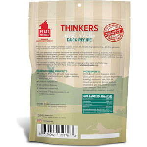Your fur-iend will be happy to do tricks for these delicious and nutritious Plato Thinkers Duck Recipe Dog Treats. These chewy delights are made with real duck and limited other ingredients so you can feel good about how you’re feeding her. With EPA and DHA, they help support healthy brain function. You won’t find artificial flavors, corn, wheat or soy. Plus, these treats are always the paw-fect size! They can be broken down into smaller pieces for petite pups and training.
