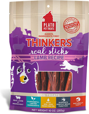 Your fur-iend will be happy to do tricks for these delicious and nutritious Plato Thinkers Real Sticks Lamb Recipe Dog Treats. These chewy delights are made with real lamb and limited ingredients, so you can feel good about how you’re feeding her. With EPA and DHA, they help support healthy brain function. You won’t find artificial flavors, corn, wheat or soy. Plus, these treats are always the paw-fect size! They can be broken down into smaller pieces for petite pups and training.