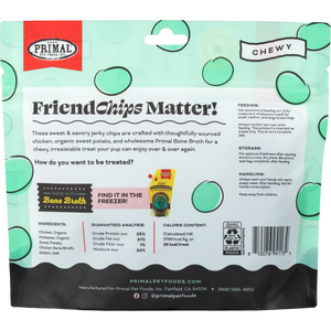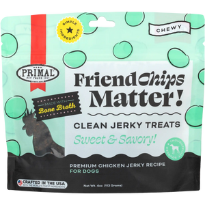 Give your pup a flavorful treat to reward his behavior with Primal FriendChips Matter Chicken with Broth Flavored Jerky Dog Treats! Made in the USA, these delicious jerky chips are made of organic, grass-fed beef that is free of antibiotics, steroids, or added hormones. Each treat is infused with a savory bone broth and has a soft, chewy texture that can easily be torn into smaller, bite-sized pieces that are paw-fect for training or rewarding. They’re completely free of grain, corn, wheat, soy, artificial colors, flavors, and preservatives, meaning they are a healthy way to let your pup know how much you care.