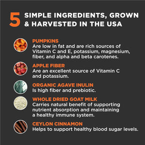 Powdered Goat Milk, Pumpkin, Apple Pectin, Agave Inulin and Ceylon Cinnamon