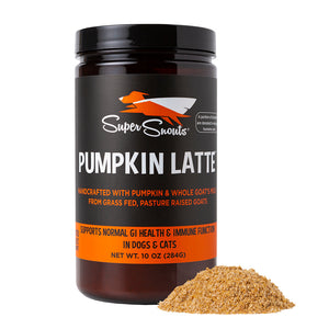 The Super Snouts Pumpkin Latte Dog & Cat Digestive Supplement supports your furbaby’s digestive health for a happy tummy. It’s made with just five ingredients, all selected to boost gut health. Whole goat milk coats the tummy and provides nutritional support to the immune system. Pumpkin is su-paw nutritious and full of immune-boosting ingredients like fiber and potassium. Apple fiber is a soluble fiber that supports and maintains lower bowel function. Organic agave inulin is an organic prebiotic fiber to support your best friend’s tummy health. Ceylon cinnamon promotes healthy digestion and helps your furbaby to absorb nutrients and properly digest food. All of these ingredients are packed into this supplement, which you can mix with water, sprinkle on food or make into treats.