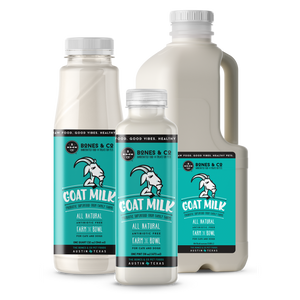 Our raw goat milk for dogs (and cats!) comes from grass-fed goats responsibly raised on small family farms. Non-homogenized and never pasteurized to ensure the nutrient benefits of raw goat milk are truly bioavailable for our dogs.