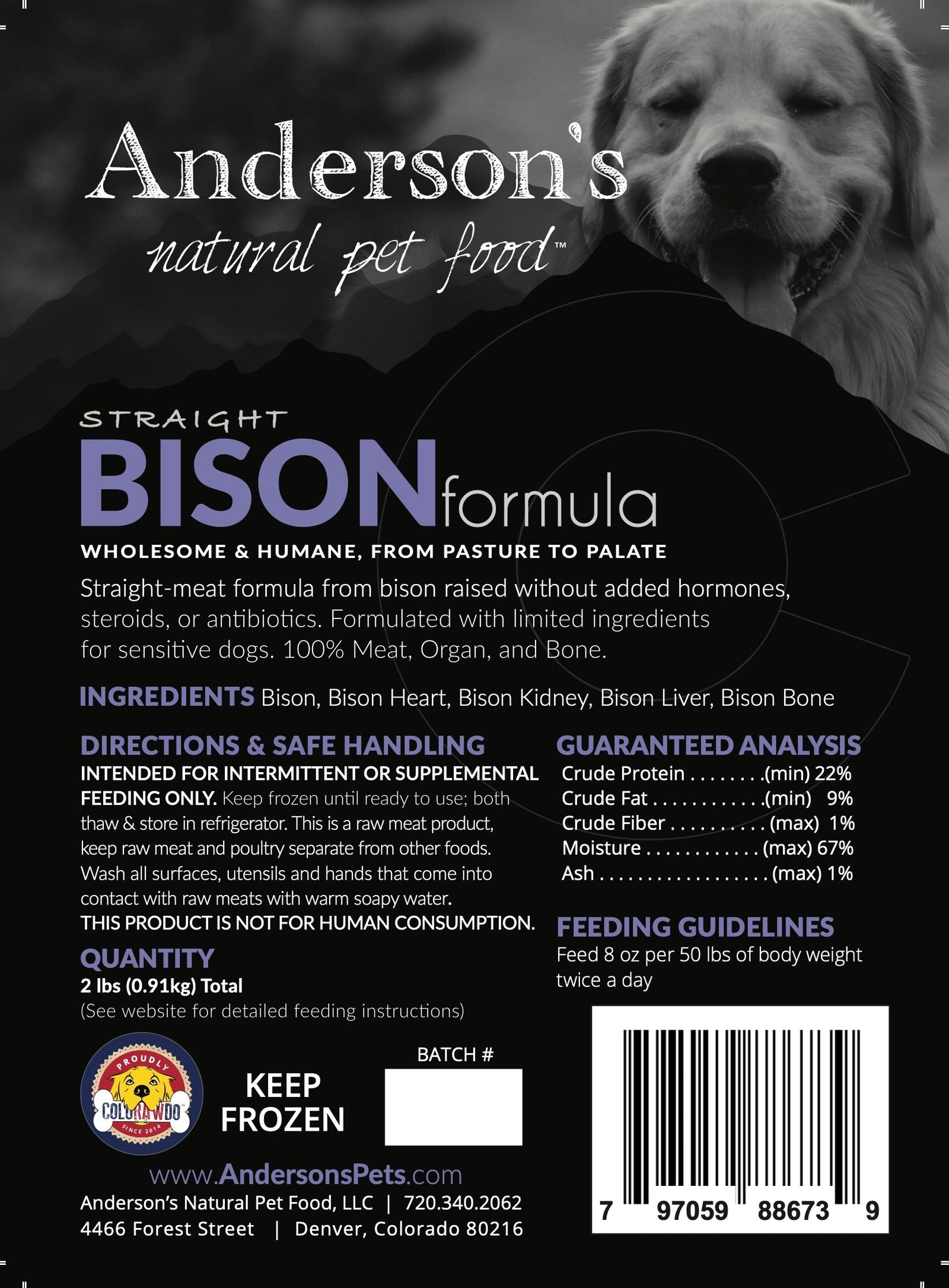Anderson's Colorado Straight Pasture-Raised Bison Only Frozen Raw Dog and Cat Food