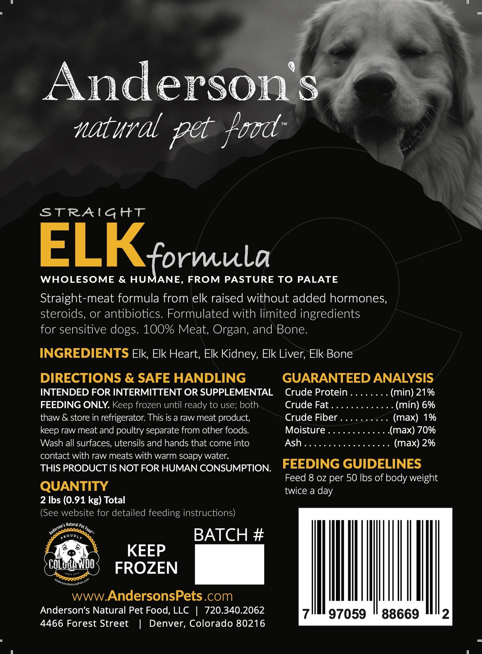 Anderson's Colorado Straight Pasture-Raised Elk Only Frozen Raw Dog and Cat Food