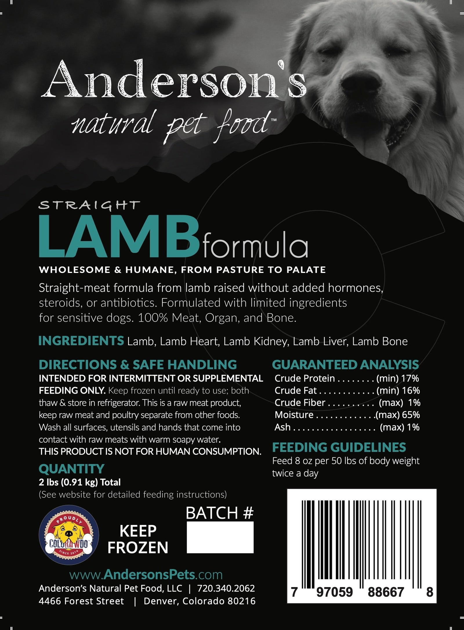 Anderson's Colorado Straight Pasture-Raised Lamb Only Frozen Raw Dog and Cat Food