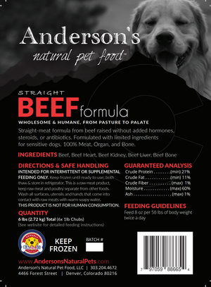 Anderson's Straight formulas have meat, bone and organ only. They are perfect for pet parents who want to be able to control every ingredient in their pets food. This can be because of allergies or sensitivities to certain foods, or because you enjoy customizing your pets diet.