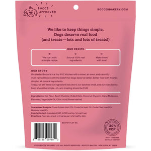 Upgrade treat time by rewarding your canine companion with Bocce’s Bakery Say Moo Beef & Cheddar Recipe Soft & Chewy Dog Treats! These goodies are oven-baked in the USA with all-natural, locally sourced ingredients and have a soft and chewy texture that's paw-fect for older pups. They are 100% free of wheat and feature real recognizable ingredients like oat flour, beef, cheddar, rolled oats and more. Now you and your paw-tner can focus on the simple goodness without worrying about nonsense fillers or by-product meals!